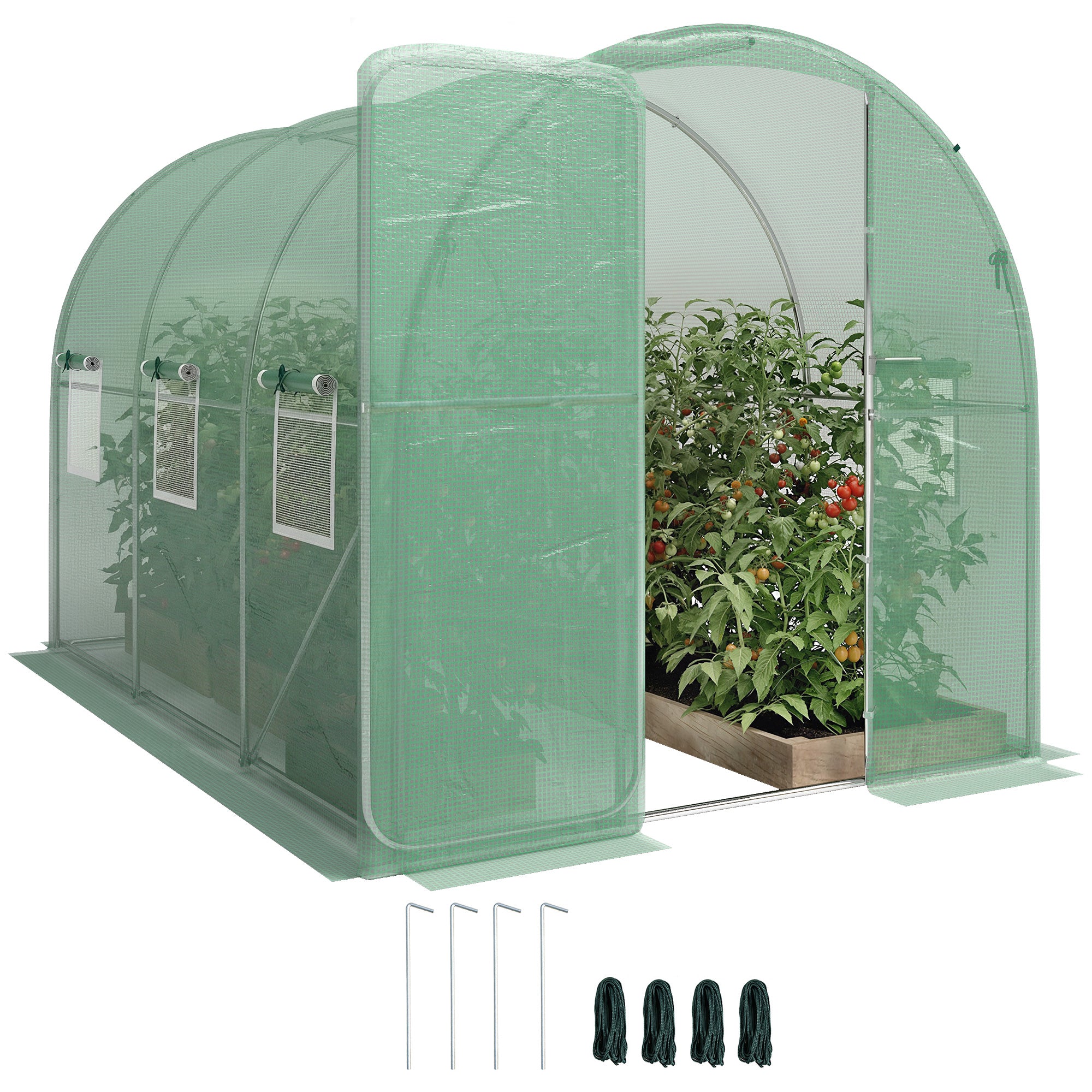 Year-round gardening with plenty of space and protection, with this Outsunny 2 x 3 m polytunnel greenhouse. A hinged door and multiple roll-up mesh windows allow easy access and plenty of fresh air. Fitted with a 140 gsm plastic cover for a protective shell - shields inside from light weather and allows sunlight to pass through for beautiful growth. The 15 cm overlong edges can be buried into the soil to enhance overall stability.