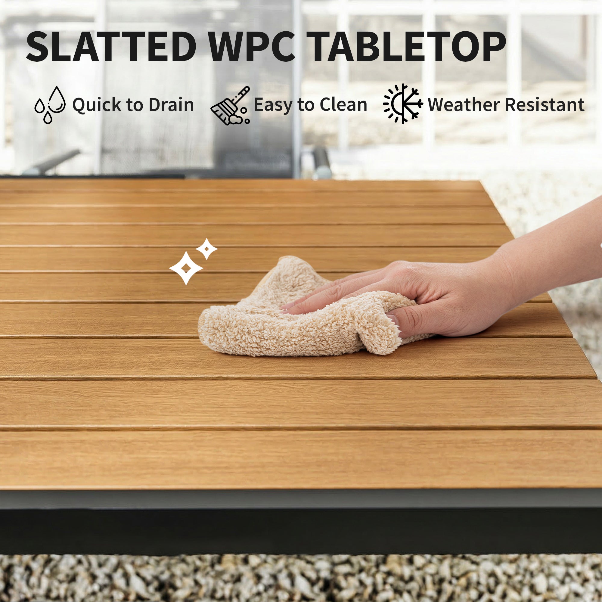 - Slatted WPC top table: The WPC tabletop is built to handle outdoor conditions, standing up to sun and rain with minimal upkeep. The slatted design allows water to drain quickly, helping the table dry faster and stay ready for everyday use