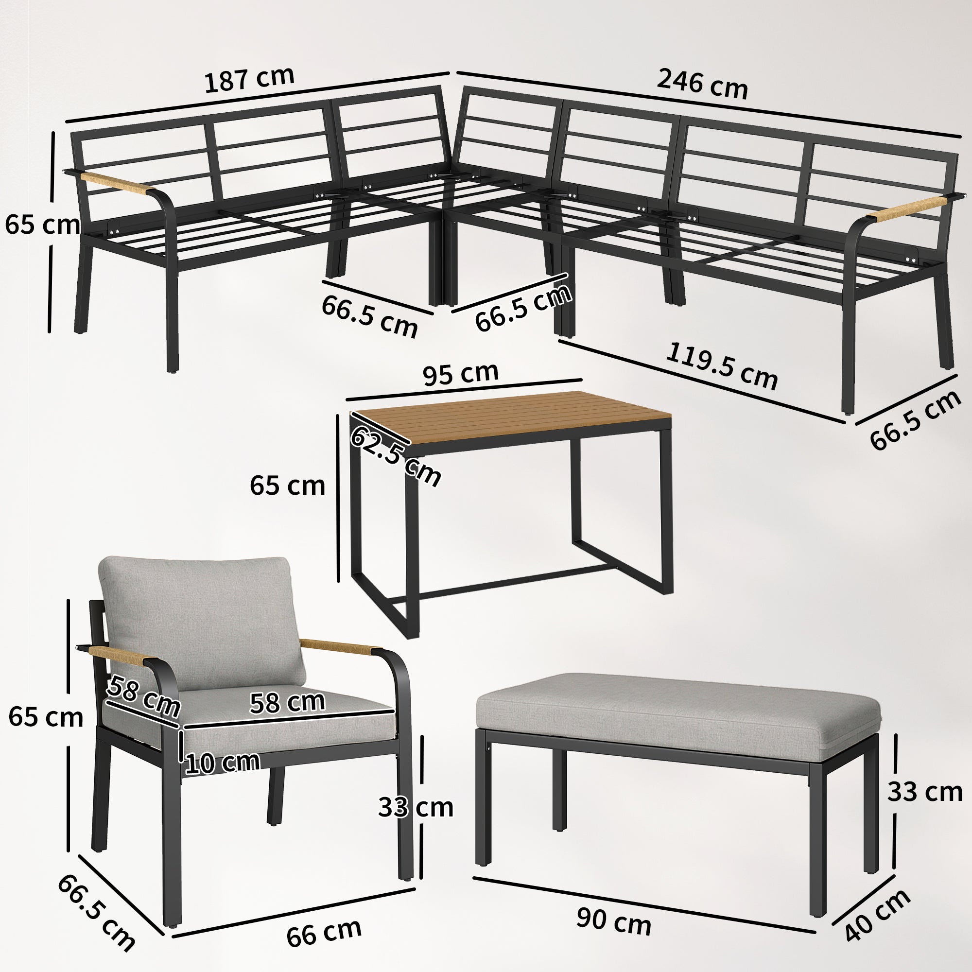 - Metal frame: Built with a rust-resistant powder coated frame, this outdoor corner set offers a strong and stable base, supporting up to 120 kg per seat for dependable seating. Rope-style rattan on the armrests adds a refined, decorative touch