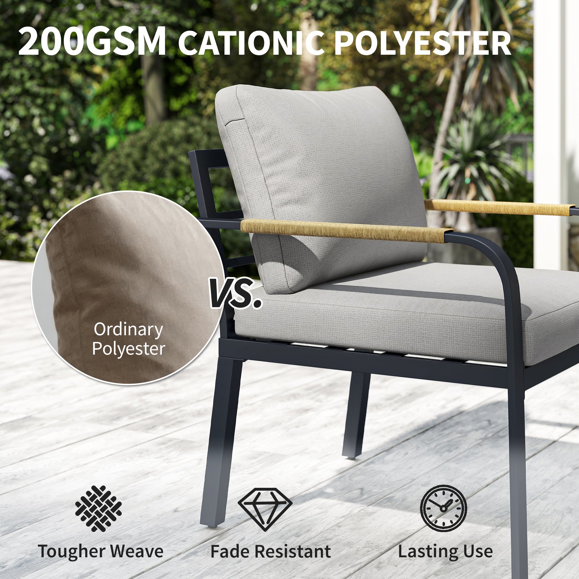 - Upgraded cushion comfort: 10 cm seat and 15 cm back cushions on the rattan garden furniture set are upholstered in 200 gsm cationic polyester fabric - more fade-resistant and tougher than ordinary polyester. Removable and washable covers for hygiene