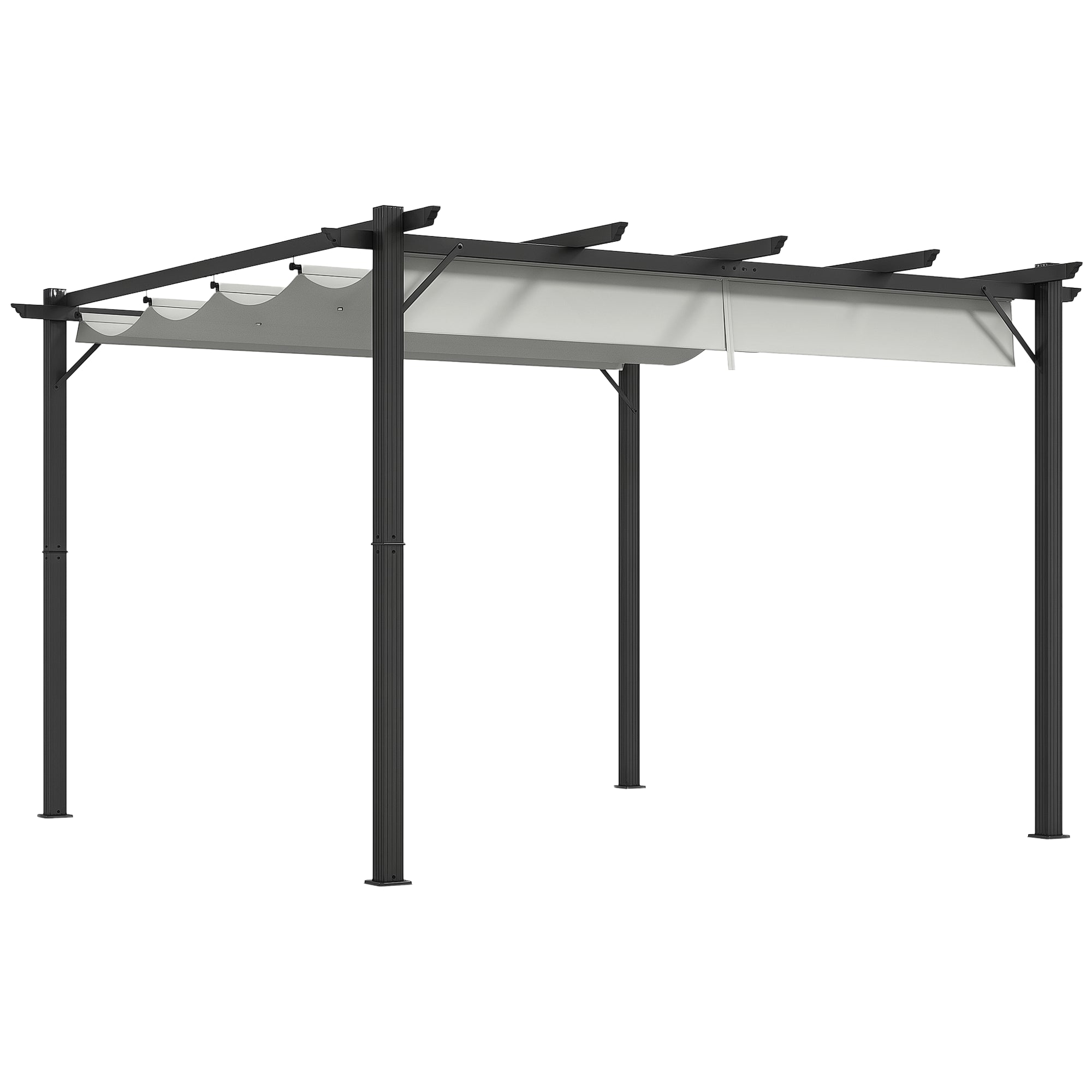 • 3 x 3(m) Pergola with Retractable Roof Canopy, Aluminium Frame Garden Gazebo Outdoor Sun Shade Shelter for Grill, Patio, Light Grey