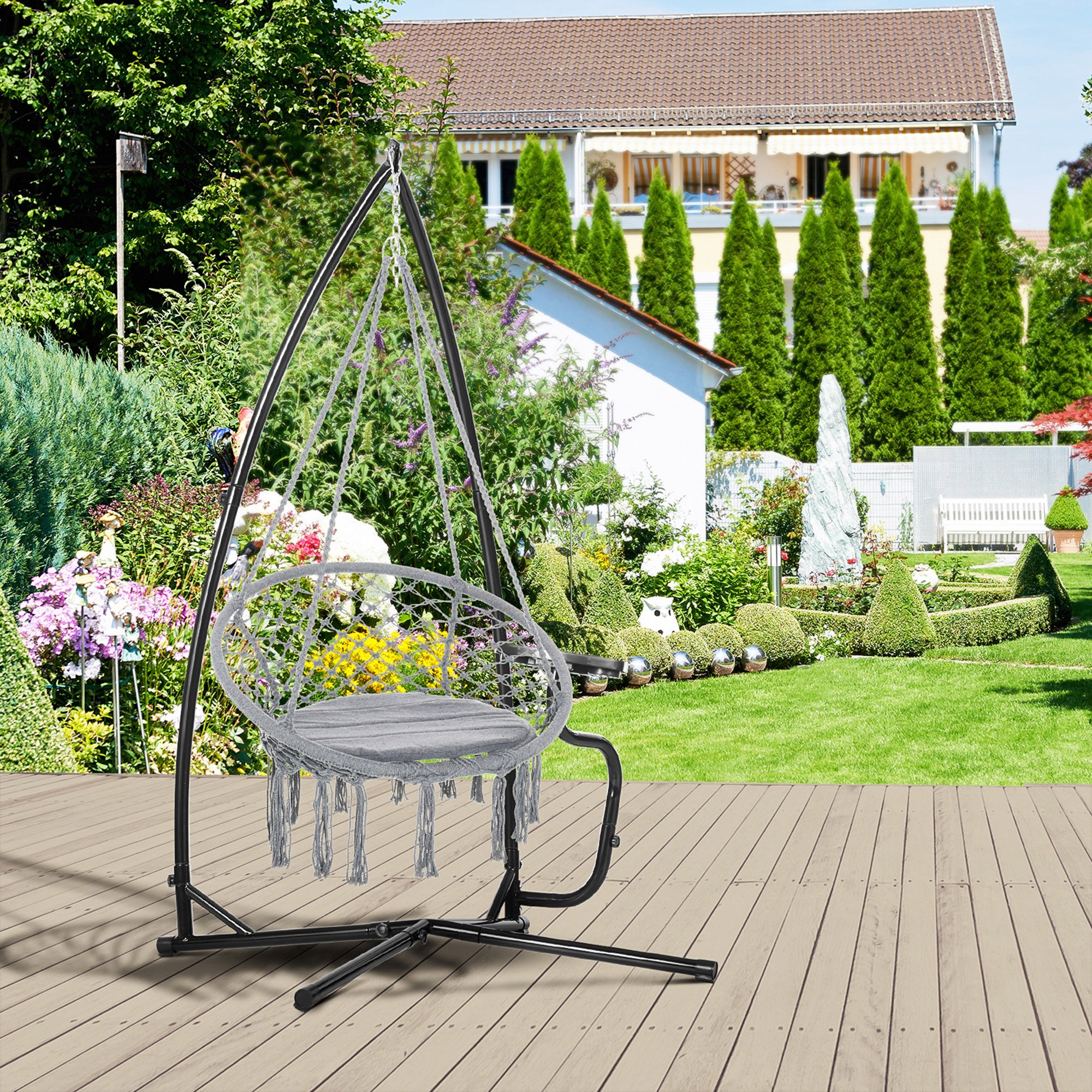 Want a hammock chair but no place to hang it? With this metal hammock chair stand from Outsunny, you don't need to find a perfectly fit tree to hang your favorite hammock chair anymore. Made from powder coated metal tube, it can withstand all weather and fits for balcony, garden, courtyard, porch, bedroom, living room or any other areas. You can easily enjoy your leisure time without any hassle. A smart and functional gadget in your leisure time !