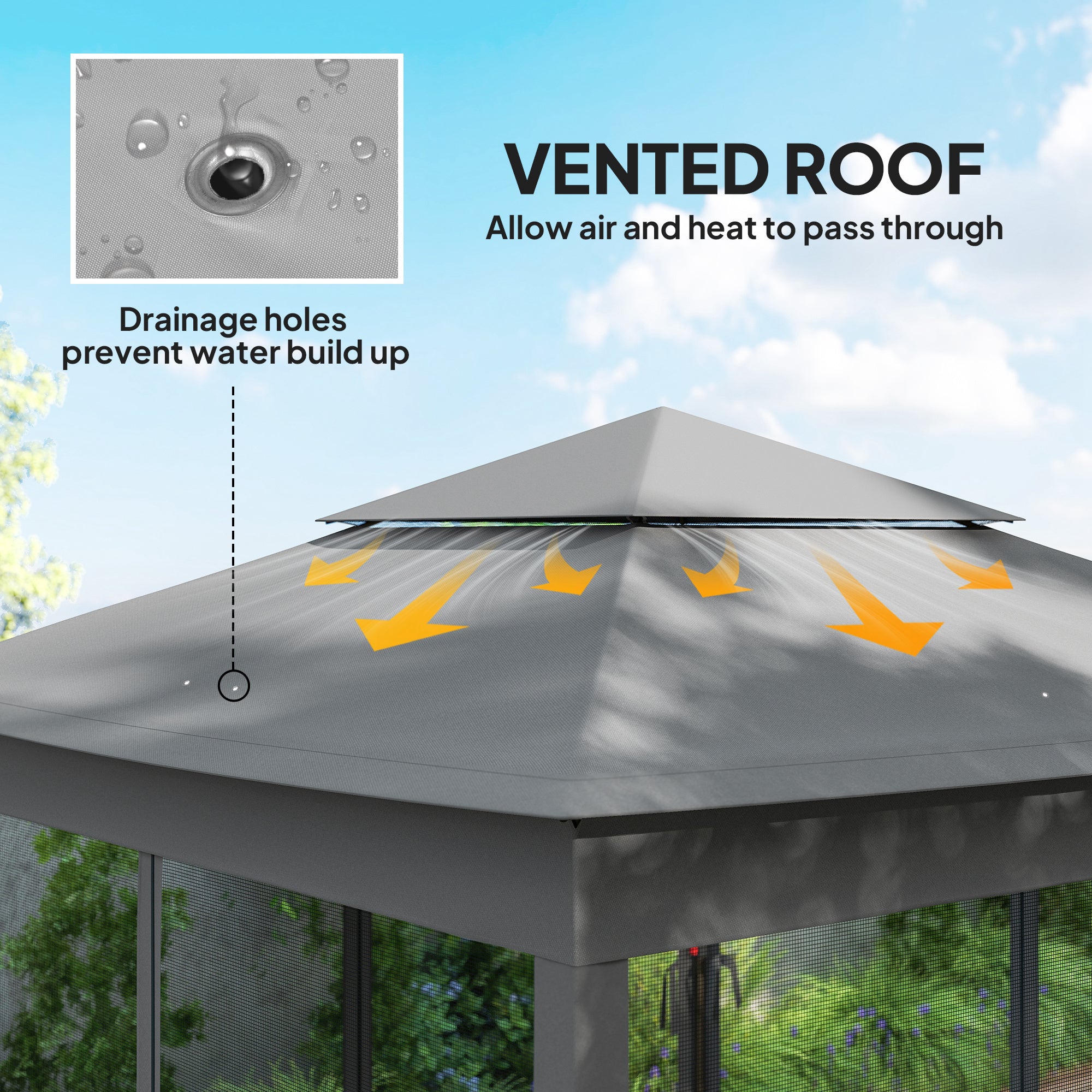 - Double roof: Two-tier roof garden gazebo promotes comfortable airflow underneath canopy.