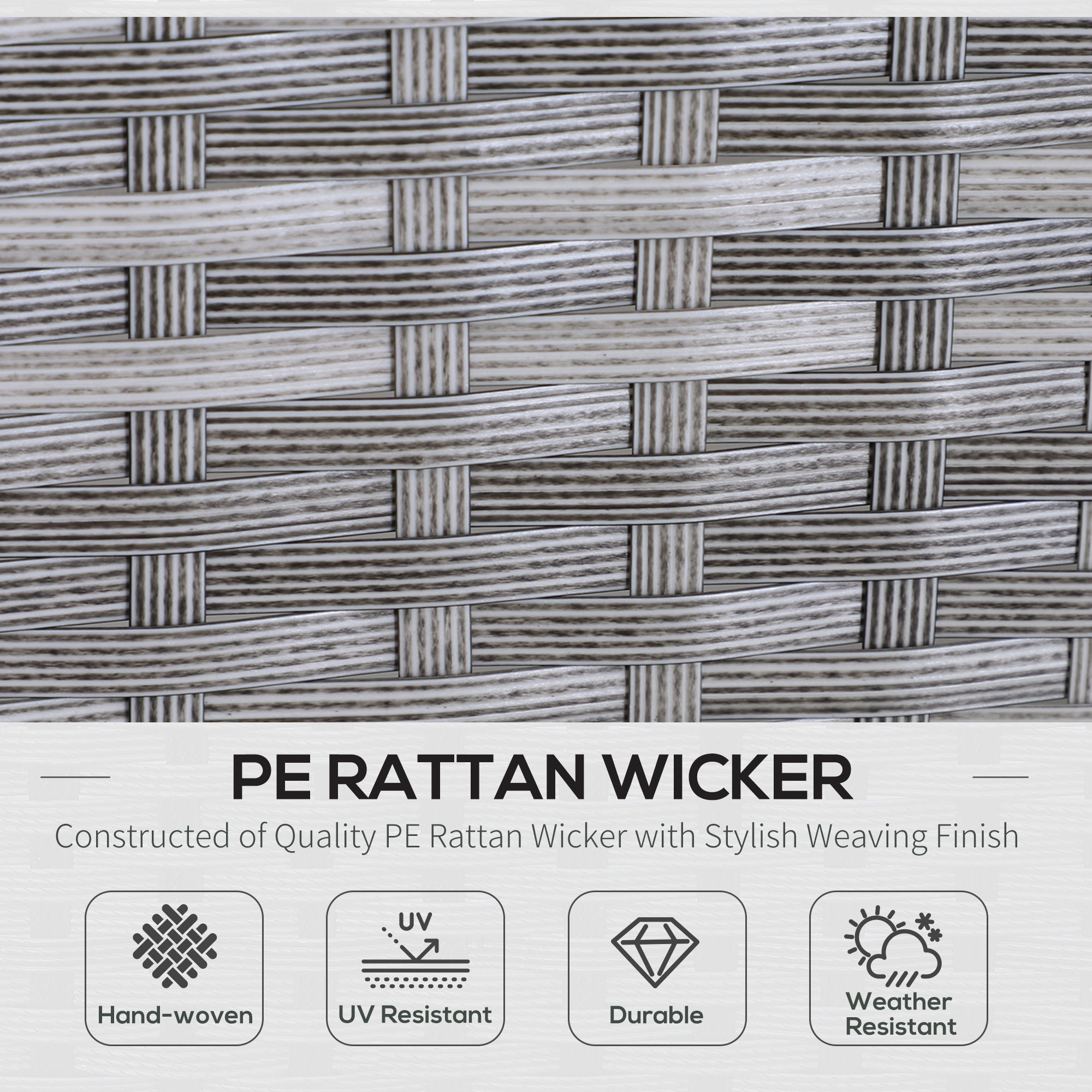 - Galvanised metal frame with double-sided PE rattan for durability;