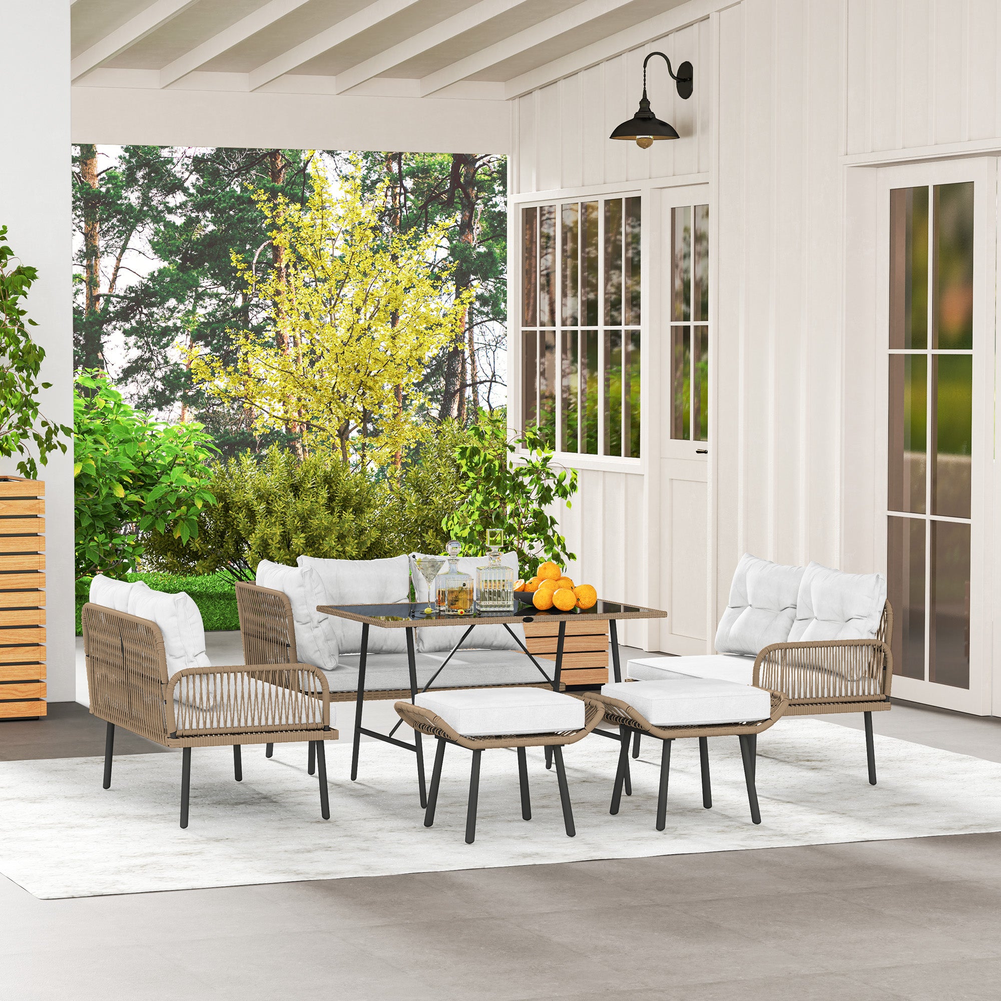 - 6-piece garden furniture set: Combining style and versatility, the set features two left/right-hand sofas, a corner sofa, a table and two stools. The modular design allows you to customise layouts to fit your patio, making it great for entertaining