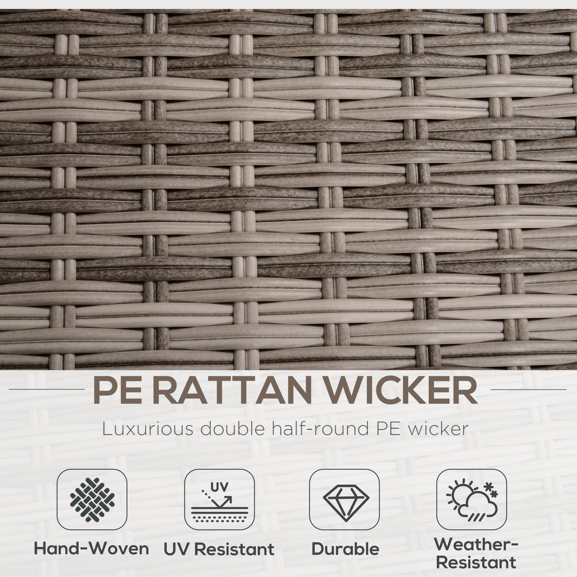 Take comfort to your garden with this eight-piece outdoor furniture from Outsunny. Powder coated steel frames make each piece strong and supportive, wrapped in plastic wicker for a stylish rattan look; also creates a protective shell. Set comes with two armless chairs, two footstools and two square tables - seats up to six people. Compact design: footstools fit under the tables and armless chairs fit into the corner chairs.