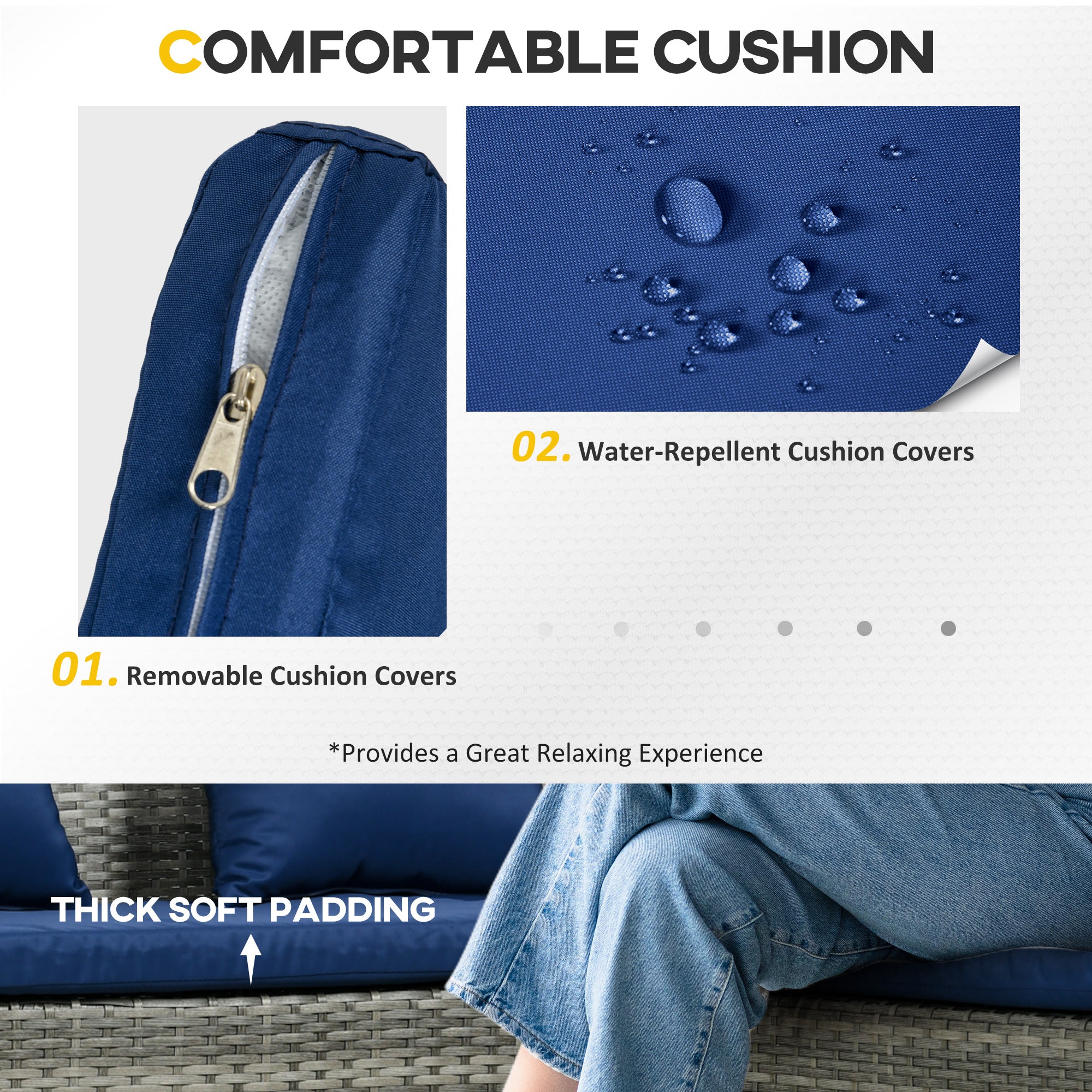 - Comfortable: The garden corner sofa with thick padded seat cushions, back cushions and pillows provides optimal comfort. Cushion covers with zips are removable and washable.