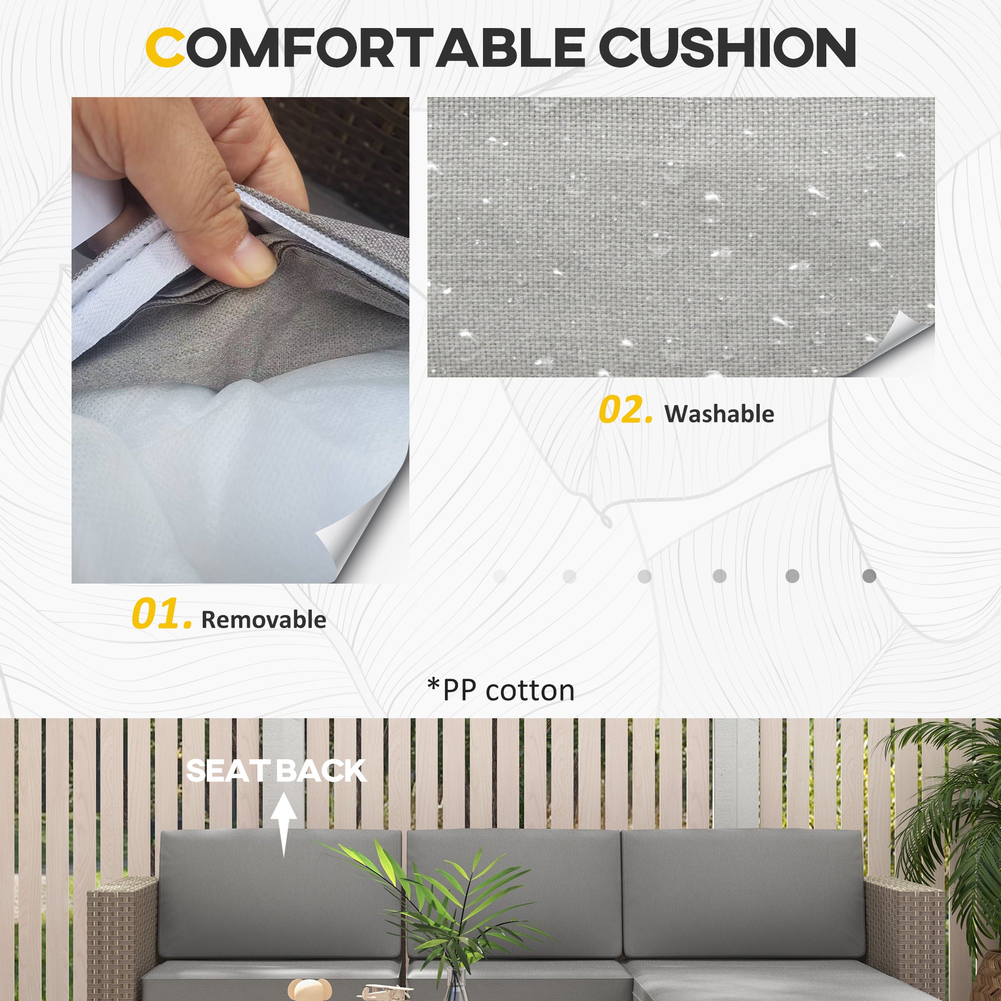 Make your home outdoors as inviting as the inside. This Outsunny garden sofa set is a super comfortable and stylish piece. Each piece offers plenty of room to sit, with padded cushions for comfort. Galvanised, powder coated metal frames mean a strong core, wrapped in stylish and protective plastic wicker. The rattan sofa set comes with armless chair, two corner chairs, a footstool and a glass-top coffee table.
