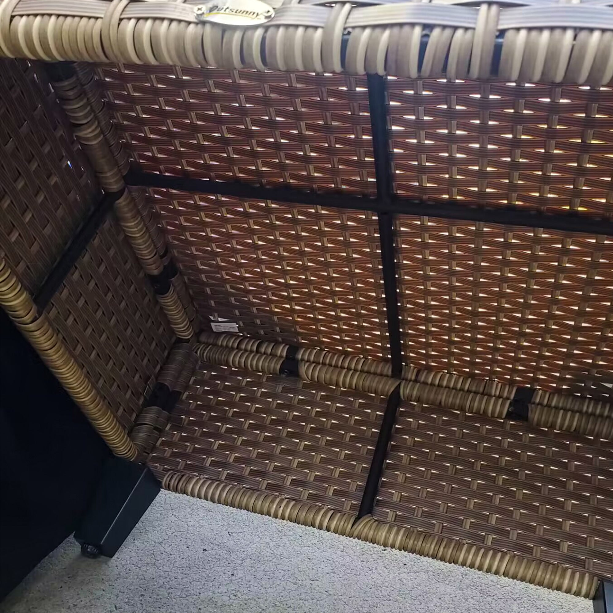 - Metal frame, wrapped in wicker: Galvanised with powder coating for strong support of the garden rattan furniture set. Stylish plastic rattan as a protective top shell. Yarn-dyed fabric resists water and fades.