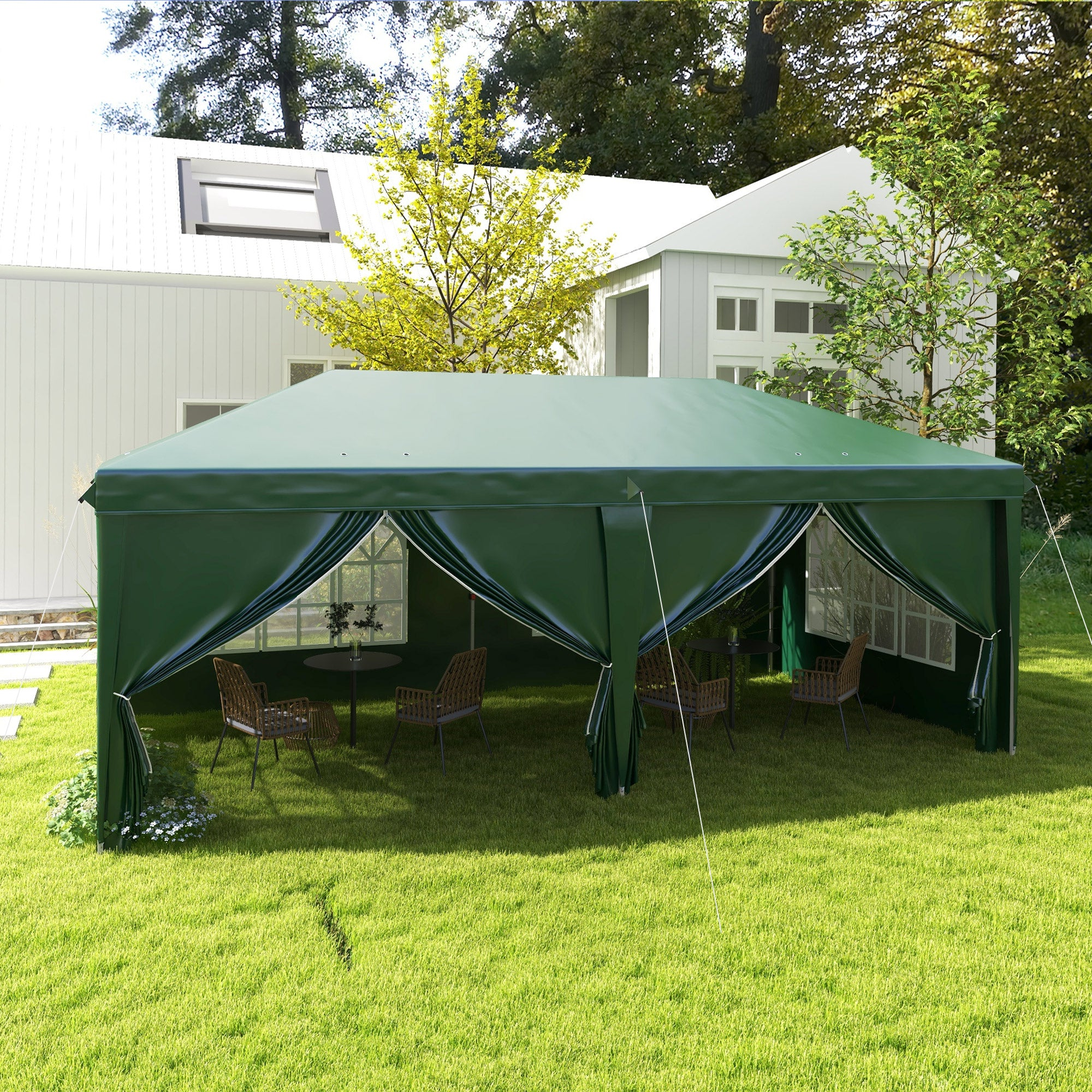 3 x 6m Garden Pop Up Gazebo, Wedding Party Tent with Sidewalls, Windows, Carry Bag, Green