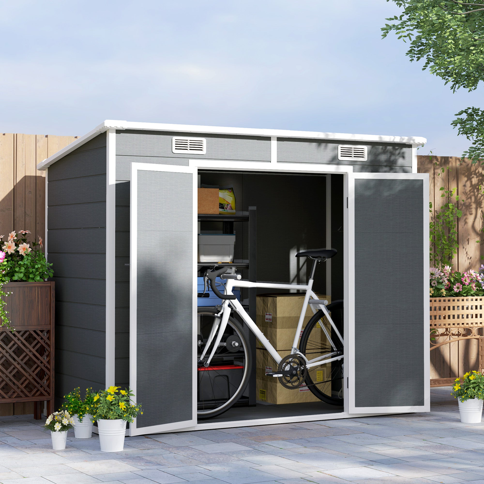 8' x 4' Outdoor Storage Shed with Window, Lockable Doors and Vents, Gray