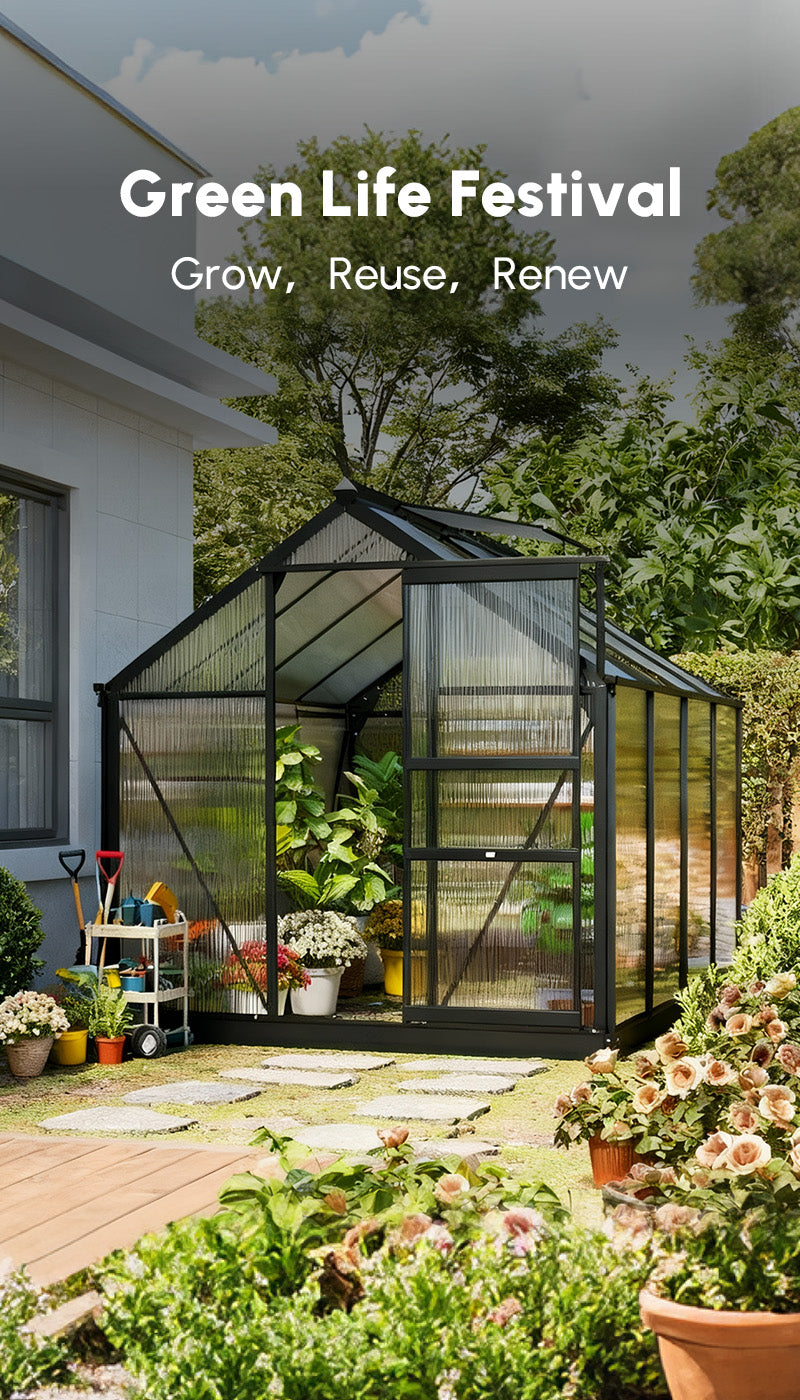 BloomGreen 20' x 8' Greenhouse with Roof Vent and Sliding Door, Clear