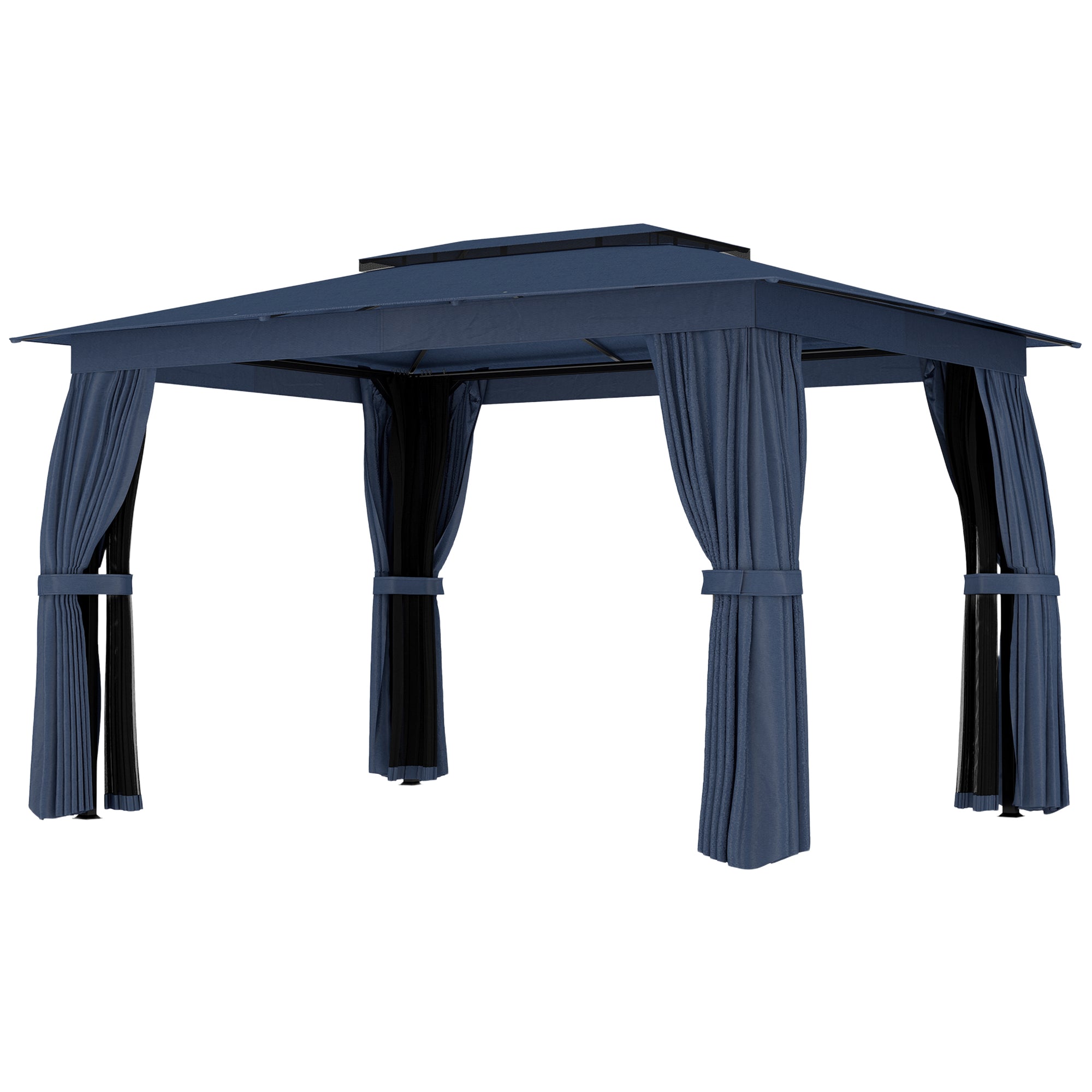 • 10' x 12' Outdoor Patio Gazebo, Soft Top Gazebo Canopy Shelter with Double Roof, Curtains, Netting, Steel Frame, UPF30+ Protection, Ceiling Hooks for Lawn, Backyard, Deck, Blue