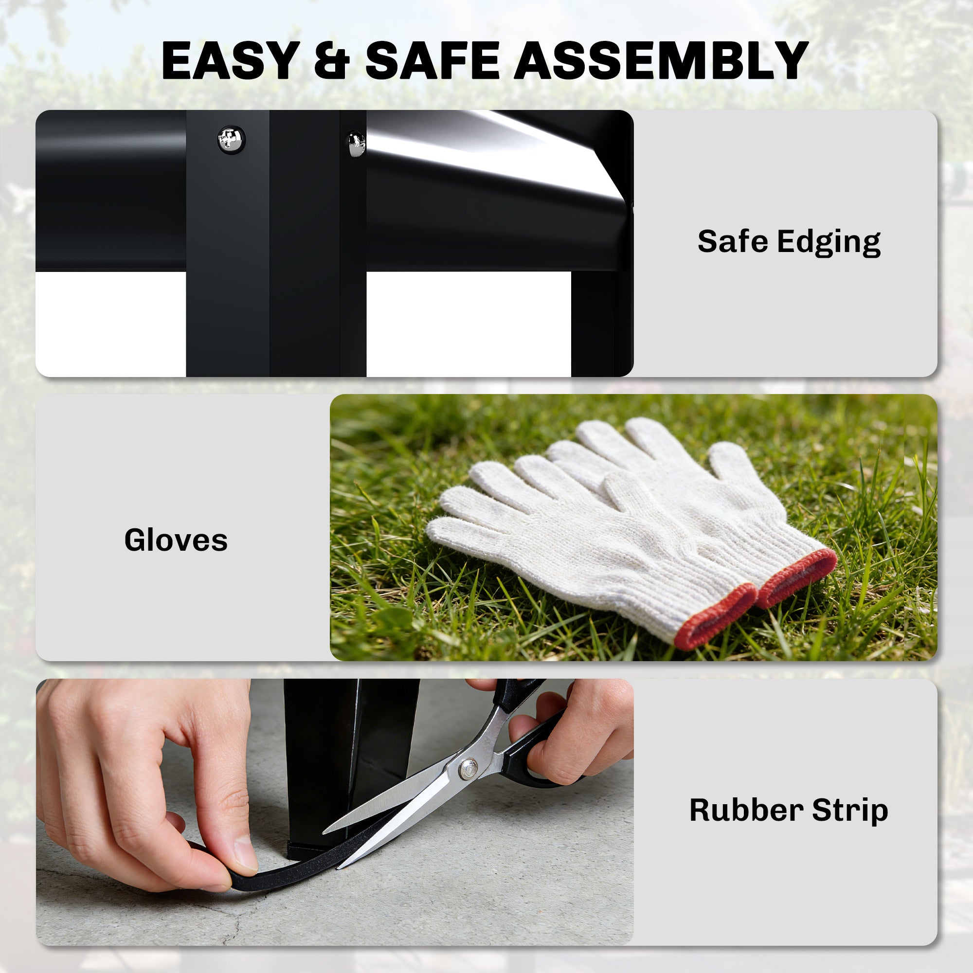 - Quick & Safe Assembly: Butterfly nuts allow easy assembly, while smooth rolled edges and included gloves help prevent cuts during setup. Our elevated garden bed also comes with a cut-to-fit rubber strip that works as foot pads to improve stability.