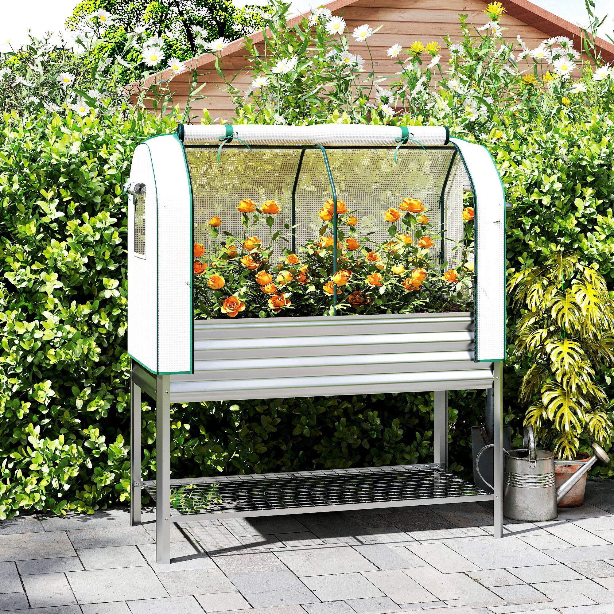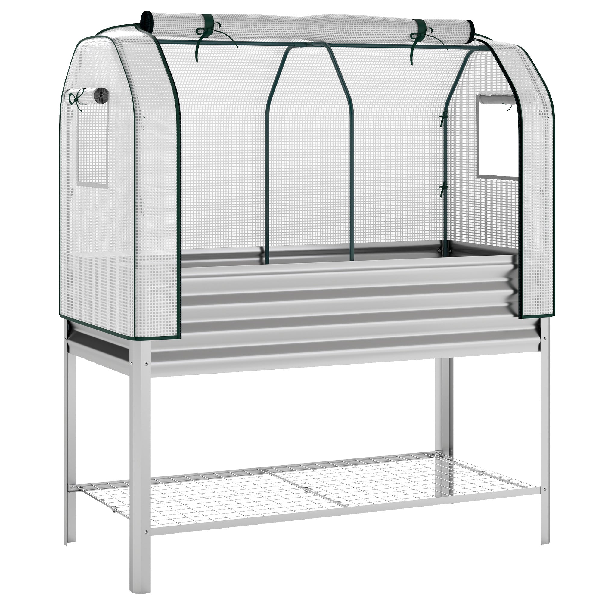 Transform your gardening experience with the Outsunny raised planter box. The PE greenhouse cover with roll-up zipper door and side vents protects plants from frost and wind while letting in sunlight and maintaining airflow. The garden planter reduces bending and strain on your back and knees and the bottom mesh shelf keeps tools and supplies within reach for easy, efficient gardening, making plant care more organized and enjoyable year-round.